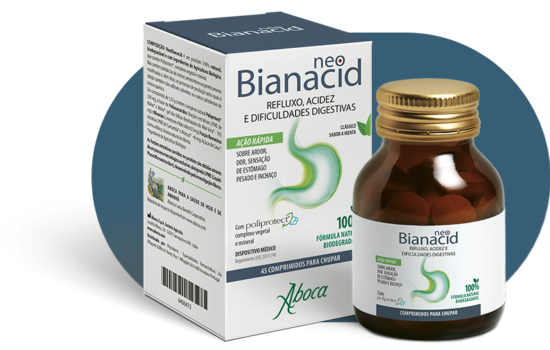 NeoBianacid modula a acidez sem a suprimir, respeitando assim a fisiologia do estômago e a função da flora intestinal.